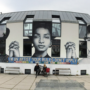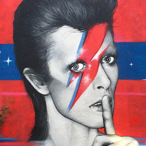 London is deeply missing the great David Bowie, who passed away in 2016. I’ve painted his portrait near Broadway Market in East London. The mural is a combined image of his famous Ziggy Stardust make-up with his finger on his lips, while the background is an abstract mix of blue and red colours. Rest In Peace David!…