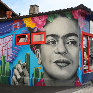 I recently travelled to Würzburg in Germany, a lovely Bavarian city with beautiful architecture. I was invited by the restaurant ‘Frida‘ to paint a Frida Kahlo themed mural on the outside walls. I depicted Frida, looking away, smoking (based on a photography by Bernard Silberstein) surrounded by the decor of her ‘Casa Azul’ in Mexico.…