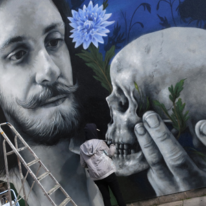 I’ve always loved the character and stories surrounding Sherlock Holmes. In the recent years there has been even more content created with movies as well as a TV series featuring Benedict Cumberbatch and Martin Freeman (playing Dr Watson). I’ve painted the portrait on a shutter in Hackney, depicting a more traditional Sherlock holding his magnifying glass and…