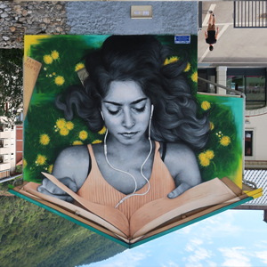 For the second edition of Eternelles Crapules festival, about 15 artists are invading the city of Moûtiers in France to create large-scale murals and graffiti pieces. I painted on the town’s book and media library a very special piece – it’s upside down! Using the triangular shape of the roof as the cover of the…
